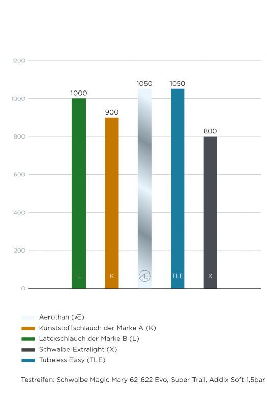 Der Aerothan Tube liegt auf Augenhöhen mit Tubeless Systemen und bietet beim MTB-spezifischen Testverfahren einen deutlich höheren Schutz vor Durchschlägen als der X-Light Butylschlauch