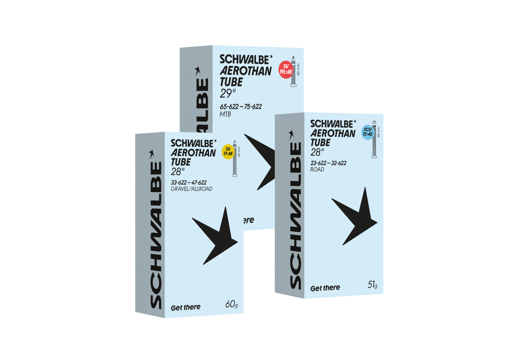 Gleichzeitig überzeugt der Aerothan-Schlauch mit seinen zentralen Performance-Vorteilen: Minimales Gewicht, sehr niedriger Rollwiderstand und eine hohe Robustheit. Er wurde dafür in allen sechs Fachmagazin-Tests, an denen er teilgenommen hat, als Testsieger ausgezeichnet – zuletzt in der Bike (01/2025) und der Mountainbike (9/2024). Die neuen Aerothan-Schläuche werden wie bisher in der Schwalbe-Zentrale in Reichshof, NRW, produziert und die Verfügbarkeit startet ab Herbst 2025. Dabei reicht die Auswahl von klein bis groß: Insgesamt bietet Schwalbe 39 verschiedene Artikel an.