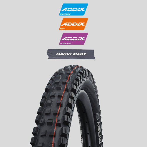 ADDIX SOFT ist ein Compound, das eine Brücke über viele Bereiche schlägt. Es gehört in die Enduro- und Downhill-Welt und genauso zu anspruchsvollem Allmountain- und Trailriding. Es glänzt auch in Kombinationen – mehr Speed: vorne Soft, hinten Speedgrip. Oder mehr Dämpfung: Vorne Ultra Soft, hinten Soft.