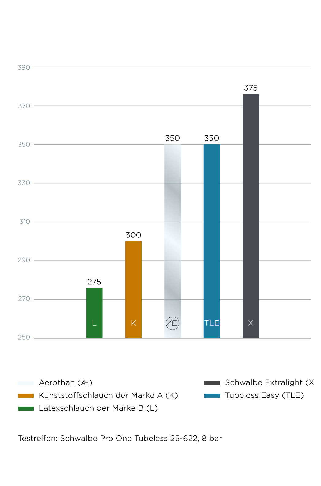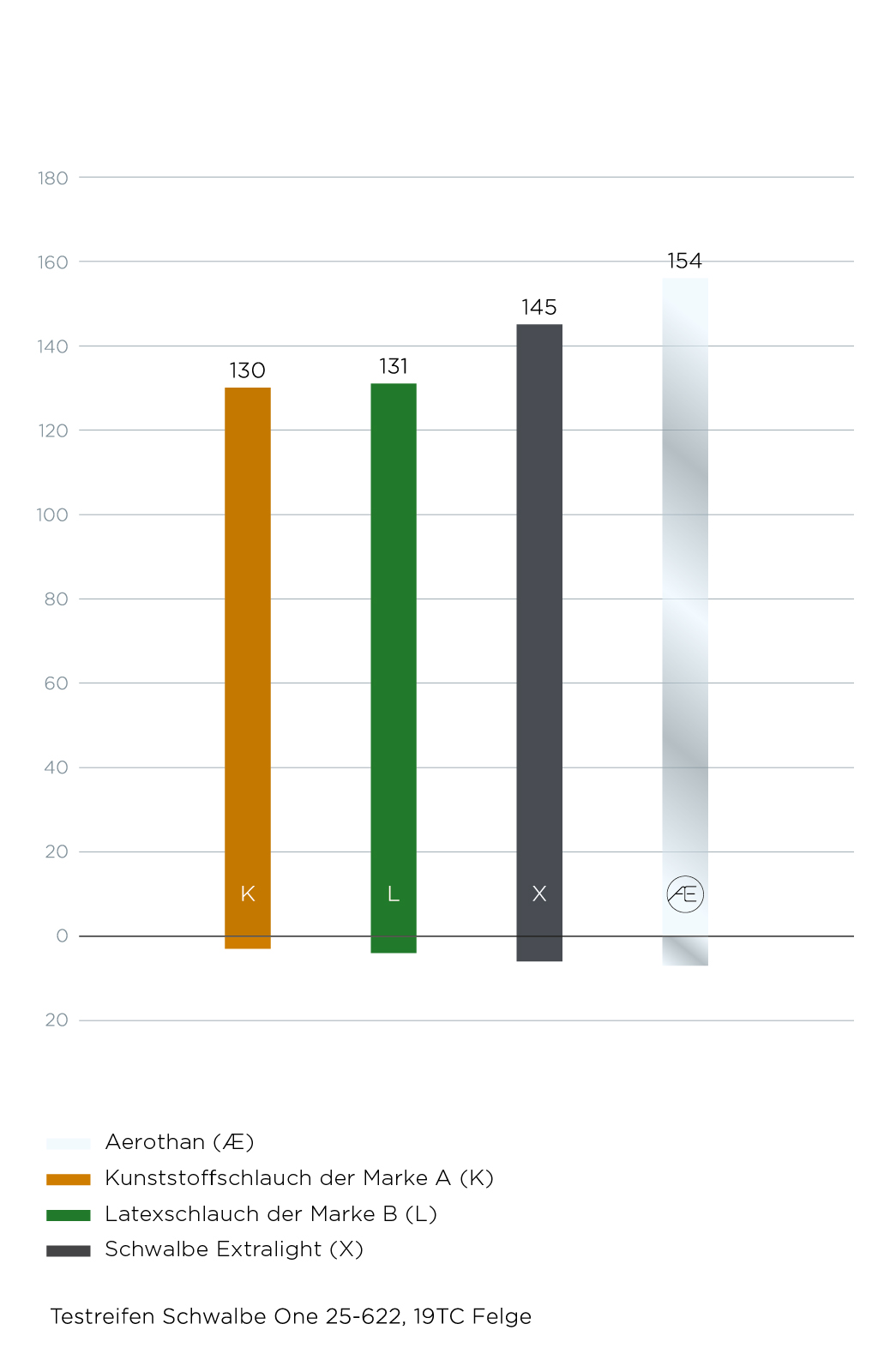 MehrAerothan Tubes verfügen über einen extrem niedrigen Rollwiderstand auf Tubeless-Niveau.