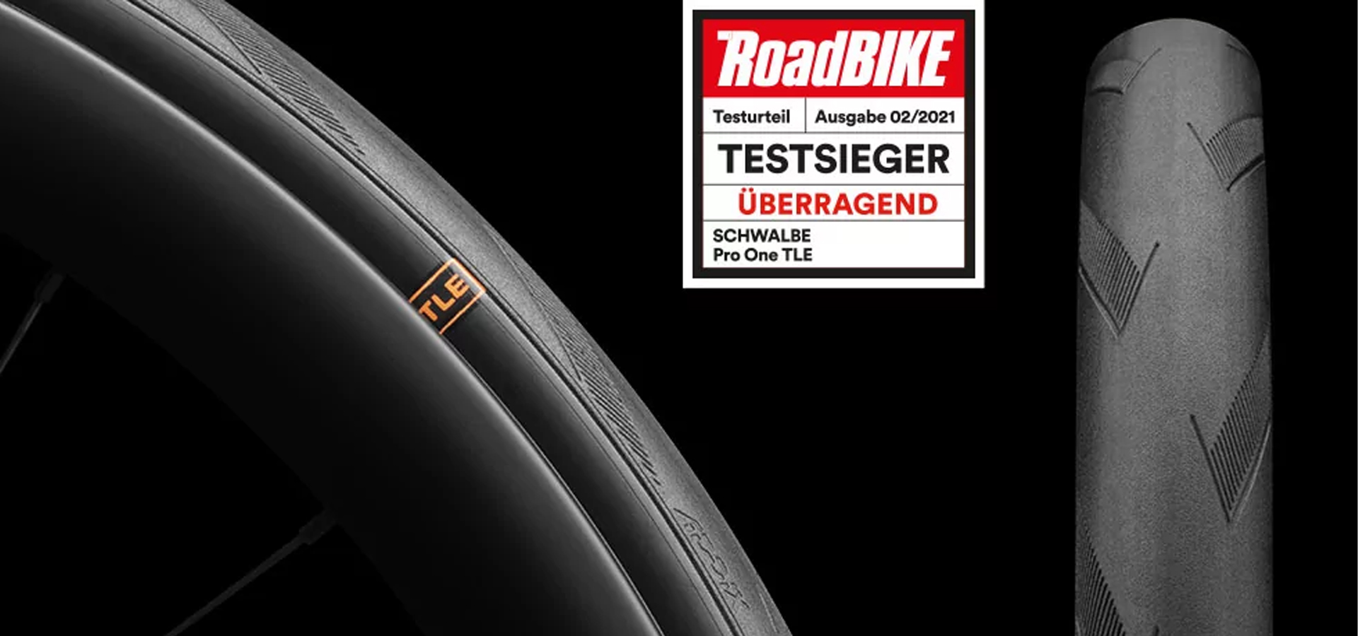Auf der Suche nach dem besten Tubeless-Set-Up hat das Roadbike Magazin (Ausgabe 02/2021) verschiedene Tubeless Easy Reifen und Dichtmittel getestet. Im Reifentest setzte sich der Schwalbe Pro One TLE gegen die Konkurrenz durch und holt mit dem Urteil „überragend“ den Testsieg.