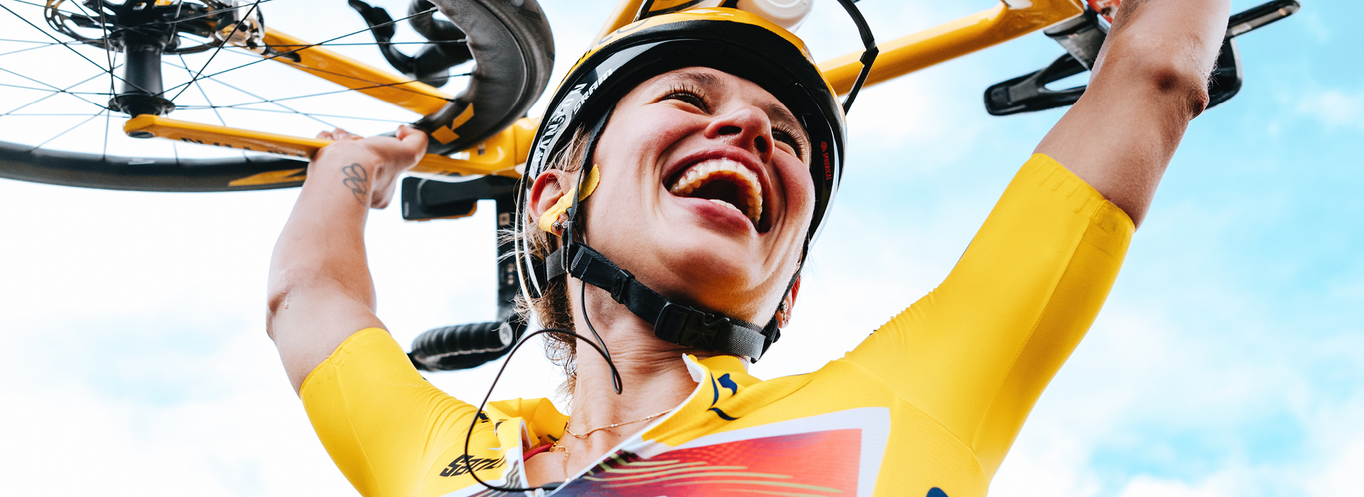 Nach einer unglaublich engen Schlussetappe mit dem Anstieg nach Alpe d'Huez hatte Kasia vier Sekunden Vorsprung auf die Niederländerin Demi Vollering. Niewiadoma war auf dem Schwalbe Pro One Aero unterwegs – einem Reifen, der mit seiner Aerodynamik Rennradreifen auf ein neues Level hebt.