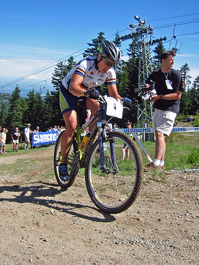 Das Rennen fand auf dem Hausberg von Vancouver, Grouse Mountain, statt. Ich habe direkt wieder ein grandioses Bild vor Augen, das von mir gemacht worden ist. Dort stehe ich oben auf dem Hang und man sieht im Hintergrund die Straßenzeilen von Vancouver. Das bleibt im Kopf hängen. Die Strecke war sehr abwechslungsreich, hat aufgrund der vielen unterschiedlichen Anforderungen sehr viel Spaß gemacht. Bei der Siegerehrung haben die Veranstalter dann die deutsche Nationalhymne nicht auf der CD gefunden, dann habe ich kurzerhand die Hymne für mich alleine gesungen (lacht).