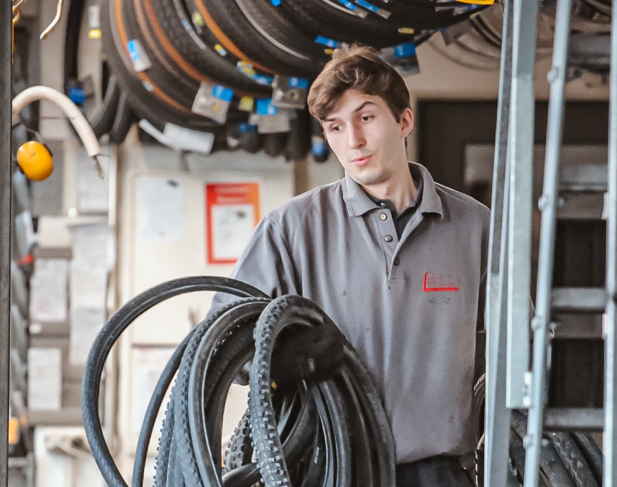 Seit 2015 recyceln wir Fahrradschläuche und setzen das recycelte Material ohne Qualitätsverlust bei der Produktion neuer Schläuche ein.