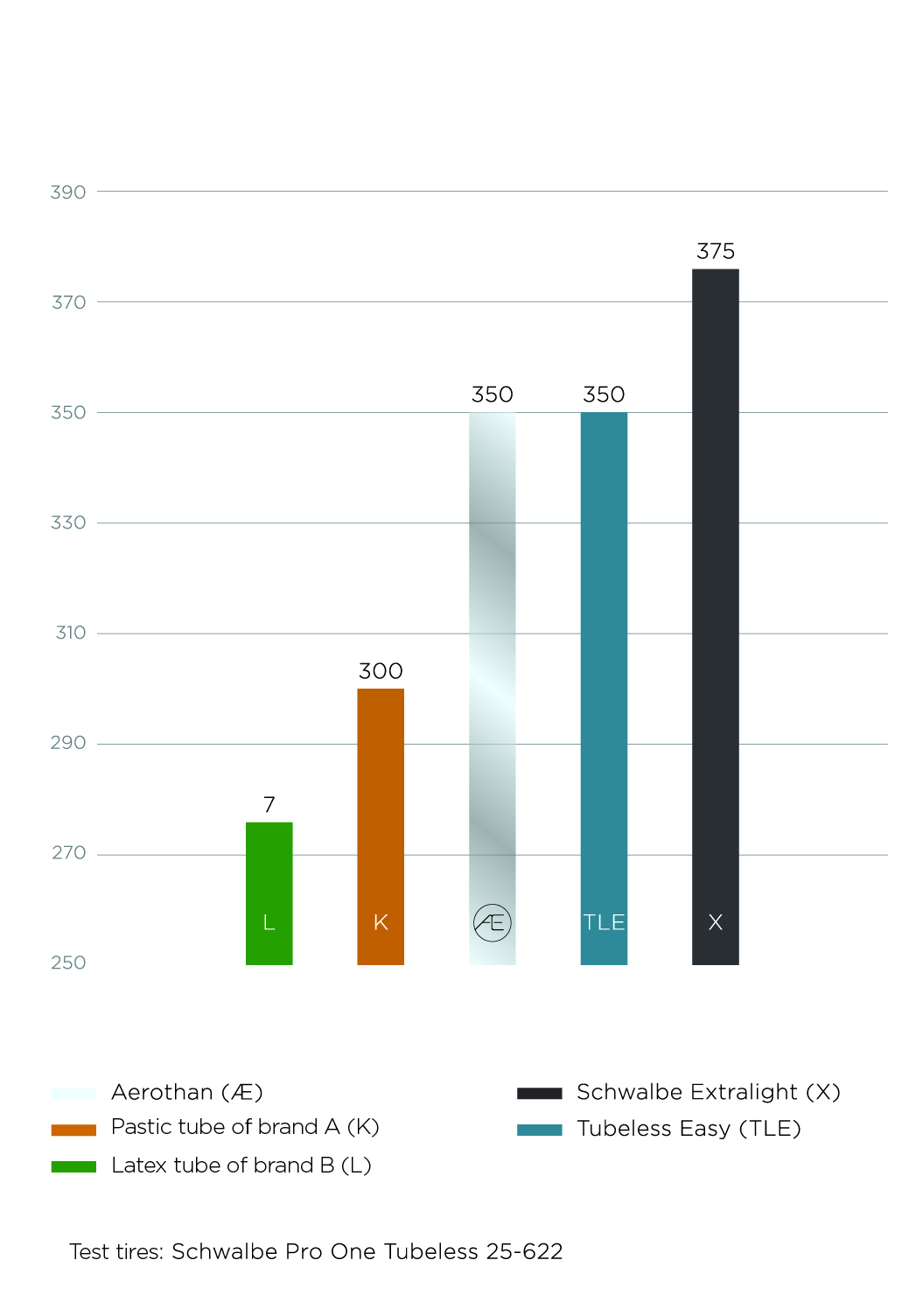 Aerothan tubes are on a par with butyl tubes in terms of how well they retain air. Frequent re-inflation, as is necessary with latex tubes, for example, is therefore not necessary. For optimal performance, it is recommended that the air pressure be checked regularly.
