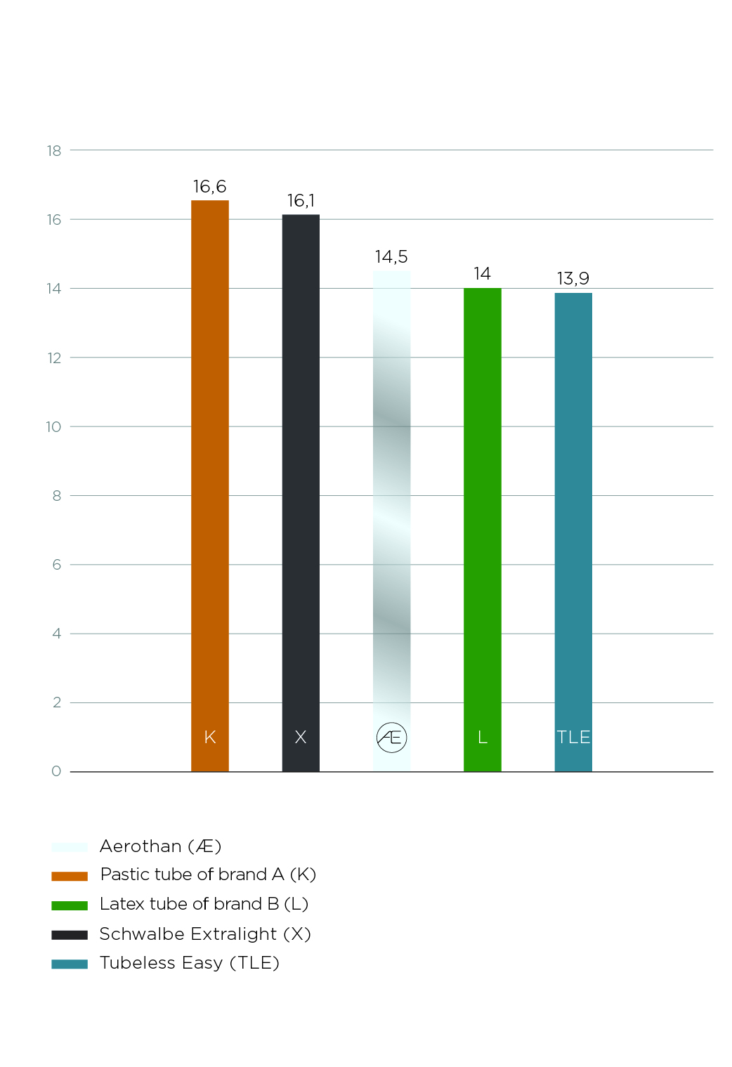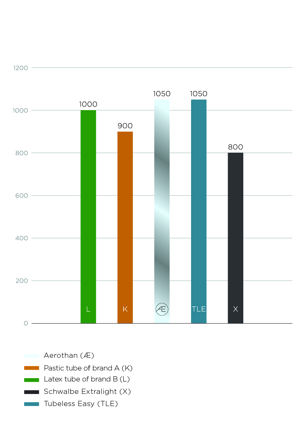 The Aerothan Tube is on a par with tubeless systems and offers significantly greater protection against punctures than the X-Light butyl tube in the MTB-specific test procedure