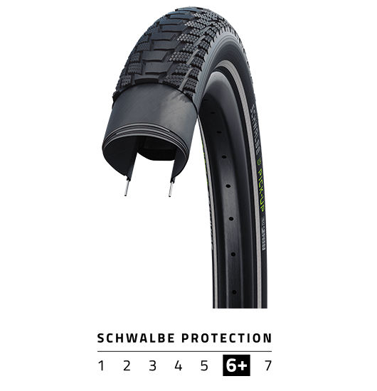 The extra weight from passengers and other loads put lots of stress on cargo bike tires. Therefore, above average puncture protection plays a central role for cargo bike tires. The Schwalbe Pick-Up is fitted with Super Defense, a very sturdy, multi-layered carcass construction which reliably protects from cuts and punctures.