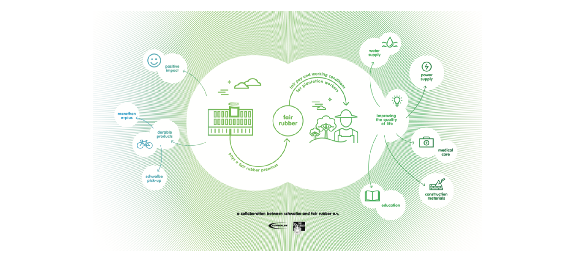Cargo bike riders are setting an example, just like the Schwalbe Pick-Up. Schwalbe is committed to fair and sustainable production of natural rubber. The Schwalbe Pick-Up is one of the first tires ever to be produced with Fair Rubber.