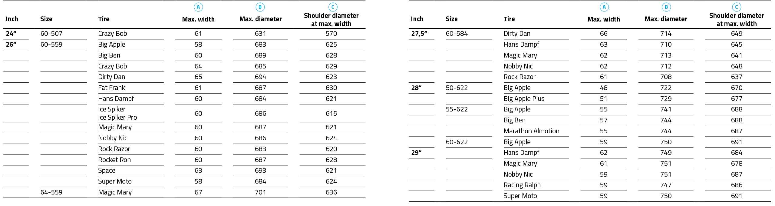 In order to ensure that the tires have sufficient clearance in the frame, most tire manufacturers prefer to use the permissible tolerance range (+/- 3 mm) or less. The quality of carcass materials has improved over the course of time. As a result, the tires expand less after mounting. Air pressure also plays a major role. At maximum air pressure, the tire becomes wider than at low pressure. And a freshly fitted tire also expands further over time. This can make a difference of 1-2 mm. The tire width is measured at the widest point, i.e. on the outside of the lug.