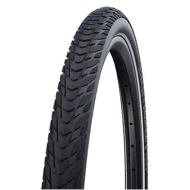 Der Schwalbe Marathon E-Plus ist der erste Fahrradreifen, dessen gesamter Anteil an natürlichem Kautschuk zu fairen Preisen eingekauft wird. Der Reifen ist speziell für den Einsatz am E-Bike entwickelt. Dort müssen Reifen höheren Belastungen standhalten; denn E-Biker sind meist schneller und mit mehr Gewicht in Form von Akku und Motor unterwegs. Der Marathon E-Plus ist auf eine möglichst lange Lebensdauer ausgelegt und vereint Haltbarkeit, Fahrperformance und unplattbar Pannenschutz mit Fair Rubber.