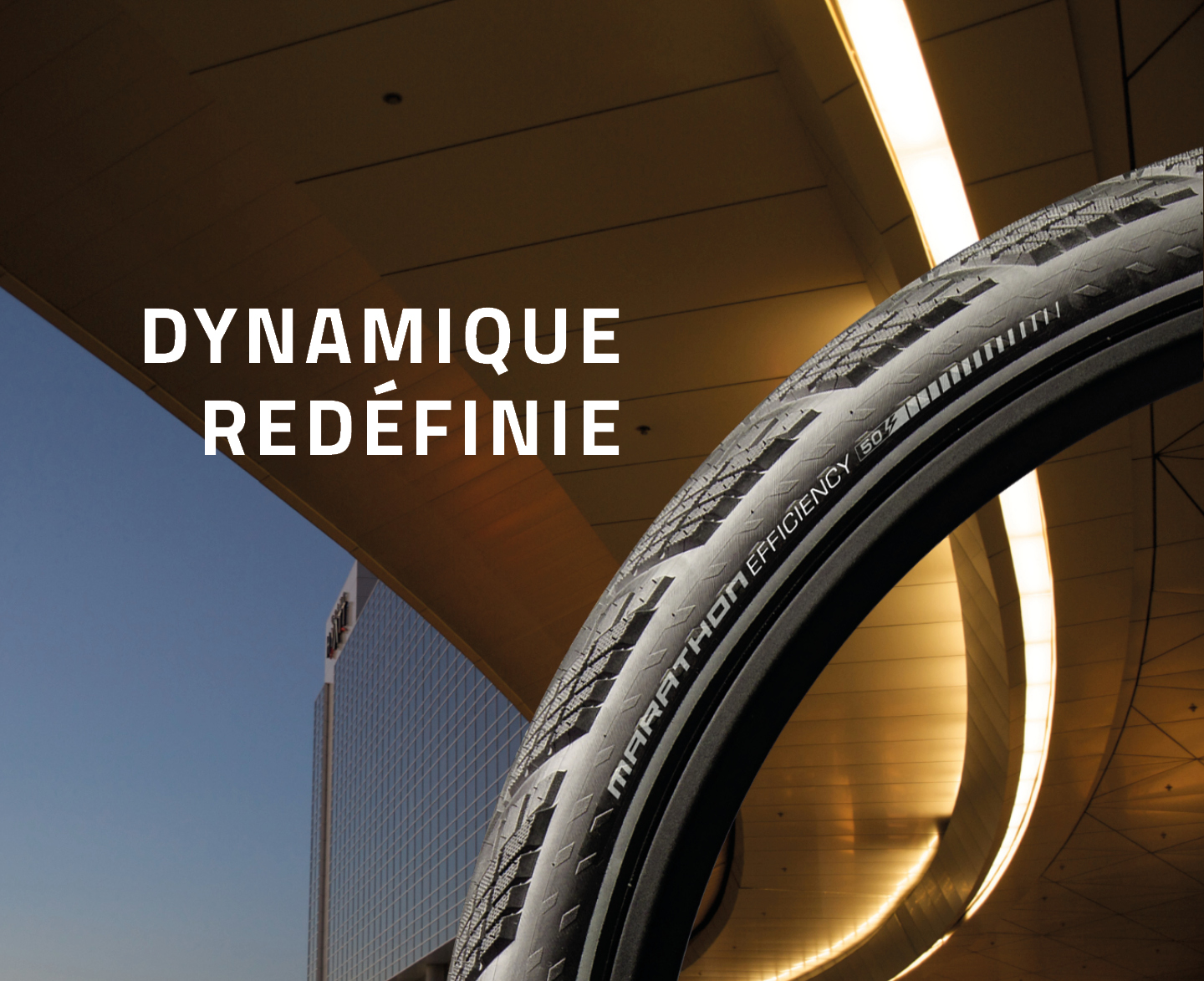 Le Marathon Efficiency regorge de technologies de pointe issues des segmentsSchwalbe du vélo de course et du VTT. Des innovations qui ont permis àdes athlètes de devenir champions du monde en triathlon, Downhill et Cross-country. Exemples de ce savoir-faire : la ceinture anti-crevaison V-Guard en fibre high-tech résistante aux perforations et aux déchirures, la construction de la carcasseSuper-Race, le mélange de gomme ADDIX Race et la tringle pliable. Ainsi, la construction du pneu, axée sur le dynamisme , permetune faible résistance au roulement tout en offrant une excellente protection contre les crevaisons.