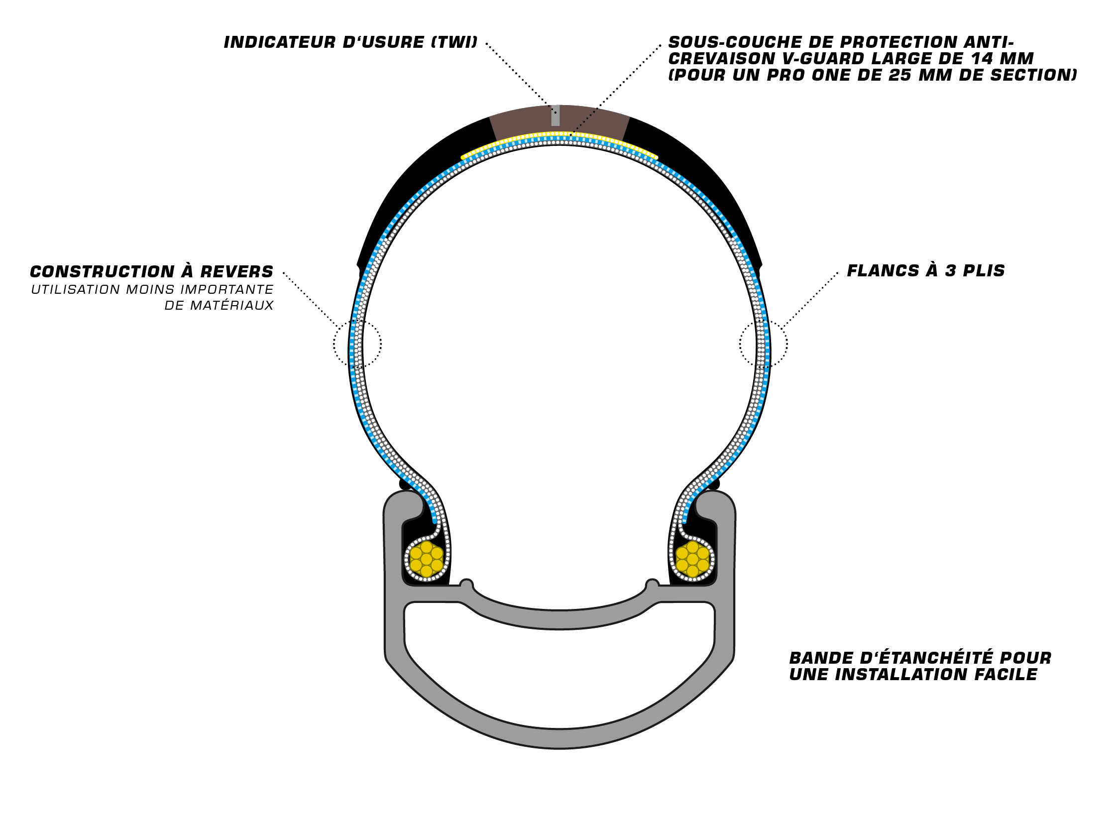Un pneu Tube Type est spécialement conçu pour une utilisation avec chambre à air et ne doit pas être utilisé en Tubeless. Pas de confusion possible : tous les pneus de course Pro One sont clairement identifiés comme "TLE" ou "TUBE ONLY" par des étiquettes supplémentaires.