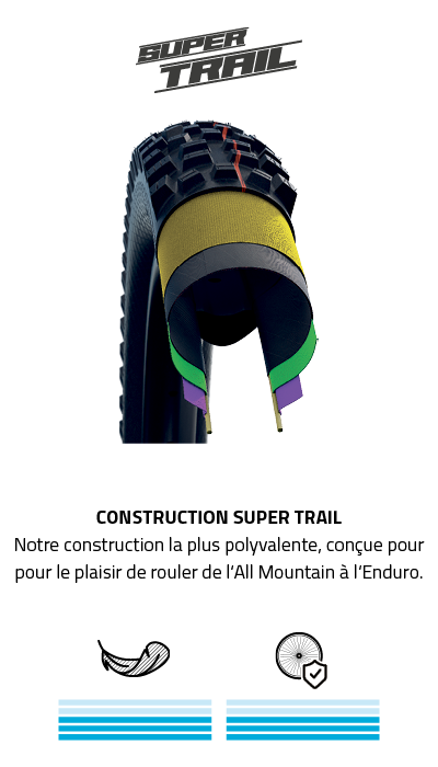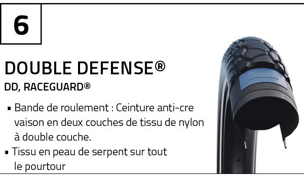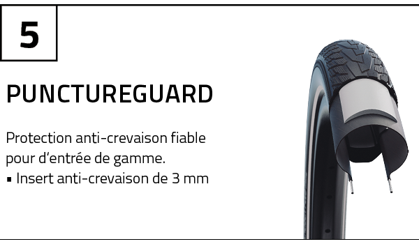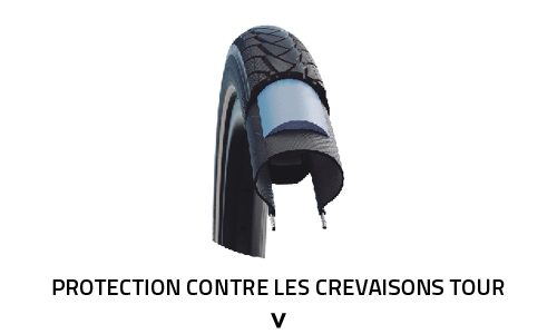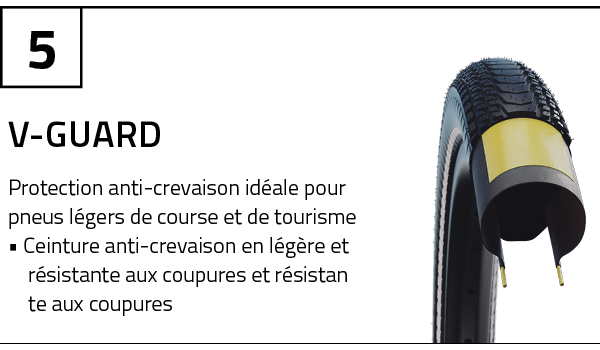 TECHNOLOGIQUEMENT, SCHWALBE POSE DES BENCHMARQUES DE PROTECTION CONTRE LES PANNES SUR LES ROUES DE VÉHICULES depuis de nombreuses années. En voici deux exemples : Seul Schwalbe possède les pneus de voyage et de ville qui peuvent être appelés "increvables" (Protection Level 7). Pour les VTT, le Tubeless est devenu la norme pour une utilisation orientée vers la performance grâce aux inserts en tissu Schwalbe de la technologie Tubeless Easy - et, avec le lait d'étanchéité, une protection optimale contre les crevaisons (Protection Level 6). Chaque segment, qu'il s'agisse de randonnée, de VTT ou de vélo de course et de gravel, a des exigences différentes en matière de sécurité et de performance. C'est pourquoi les constructions et les systèmes anti-crevaison des pneus de ces catégories se distinguent parfois nettement les uns des autres. Nous indiquons ici quelles sont les ceintures anti-crevaison et les constructions disponibles pour chaque catégorie.