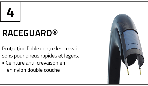 Ce principe de fonctionnement simple est également supérieur aux ceintures de protection high-tech en aramide ou en Vectran. Toutefois, ces ceintures ont un autre avantage. Elles permettent d'apporter une très bonne protection contre les crevaisons, même à des pneus très légers. Les fibres elles-mêmes sont très résistantes aux coupures.