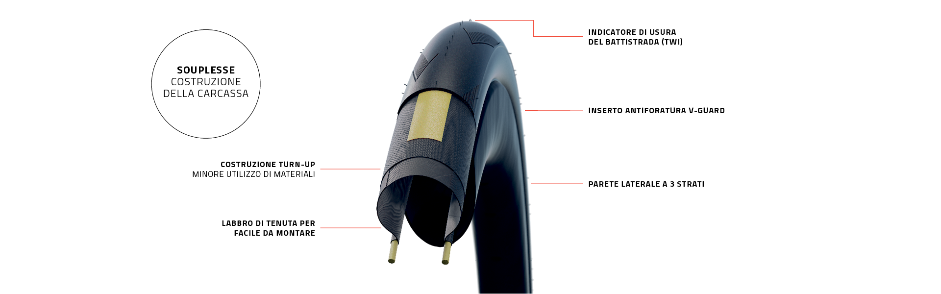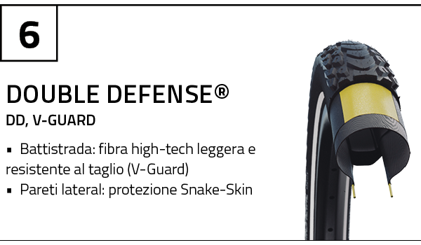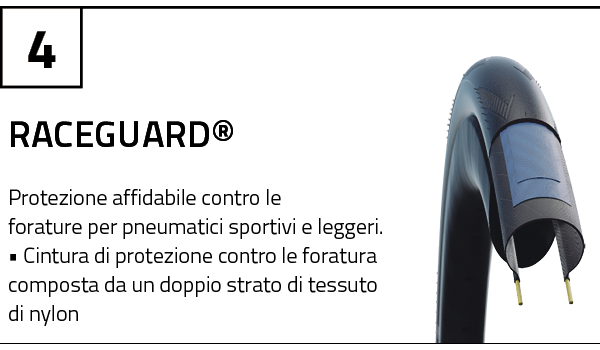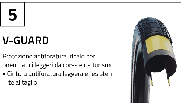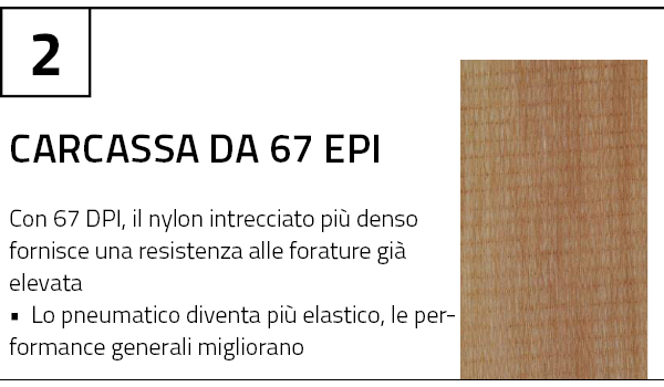 Questo semplice principio di funzionamento è superiore anche alle protezioni High Tech in Aramide o Vectran. Tuttavia, questi inserti offrono anche un altro vantaggio perché permettono di avere una buona protezione contro le forature agli pneumatici molto leggeri. Le fibre stesse sono estremamente resistenti ai tagli poiché sono tessute molto densamente con una tecnica speciale.