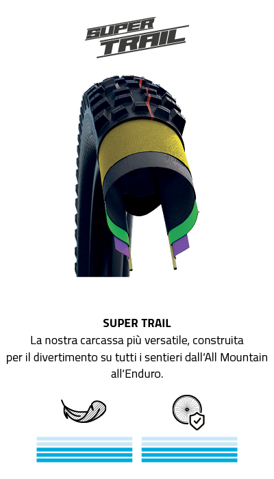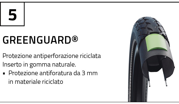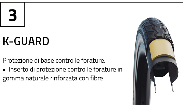 DA MOLTI ANNI SCHWALBE STABILISCE I PARAMETRI TECNOLOGICI DI RIFERIMENTO PER LA PROTEZIONE DALLE FORATURE NELLE BICICLETTE. Due esempi: Solo Schwalbe ha pneumatici da turismo e da città che possono definirsi "non perforabili" (livello di protezione 7). Per le mountain bike, il tubeless è diventato lo standard per un utilizzo orientato alle prestazioni grazie agli inserti in tessuto Schwalbe della tecnologia Tubeless Easy - e insieme al liquido sigillante per una protezione ottimale dalle forature (Livello di protezione 6). Ogni segmento, sia esso touring, MTB o bici da corsa e gravel, ha esigenze diverse in termini di sicurezza e prestazioni. Per questo motivo, i design e i sistemi di protezione dalle forature degli pneumatici di queste categorie differiscono talvolta in modo significativo l'uno dall'altro. Qui di seguito mostriamo quali sono gli inserti di protezione contro le forature e le costruzioni disponibili per le rispettive categorie.