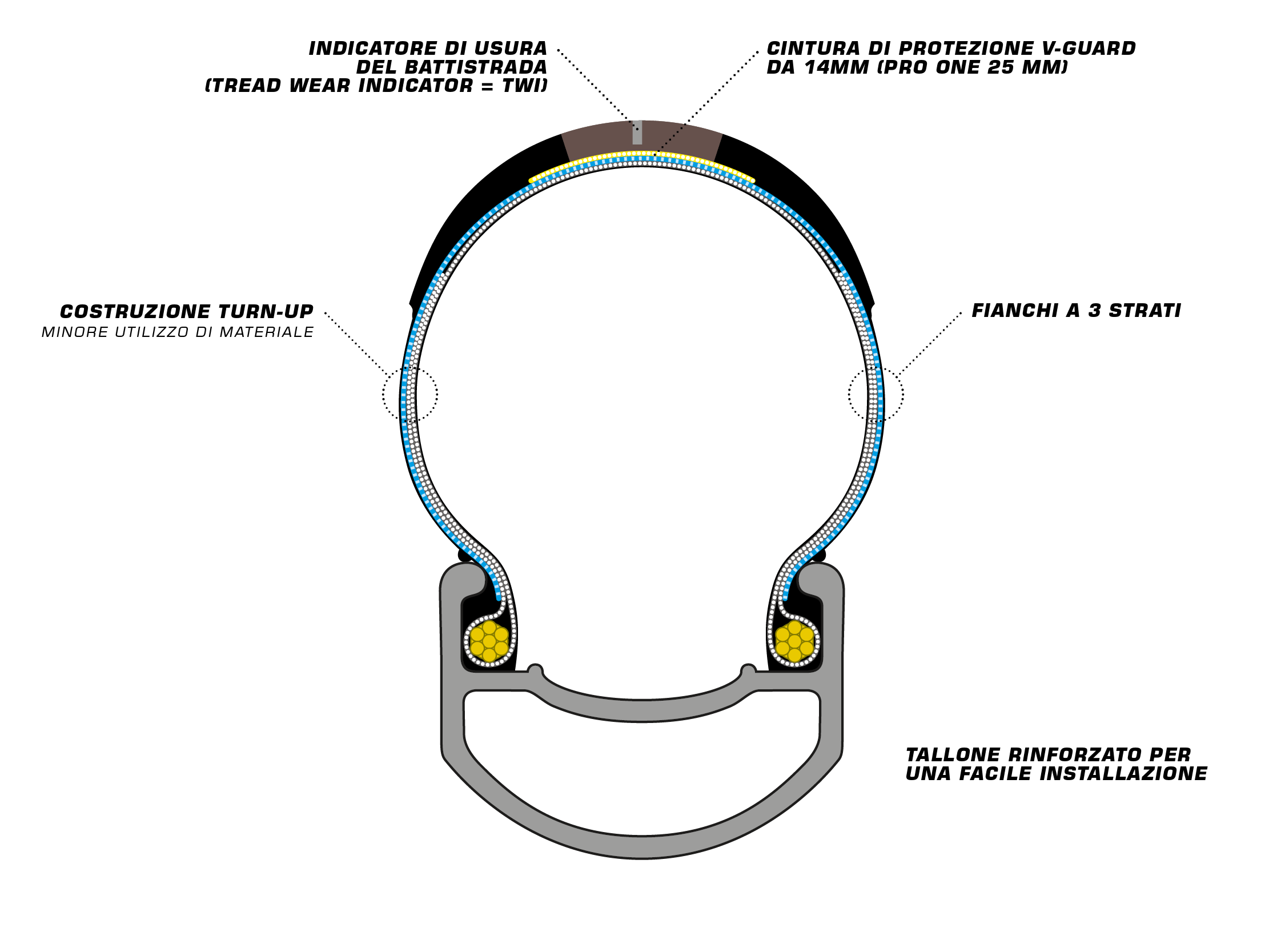 - Carcassa dello pneumatico extra robusta, fianchi rinforzati con gomma