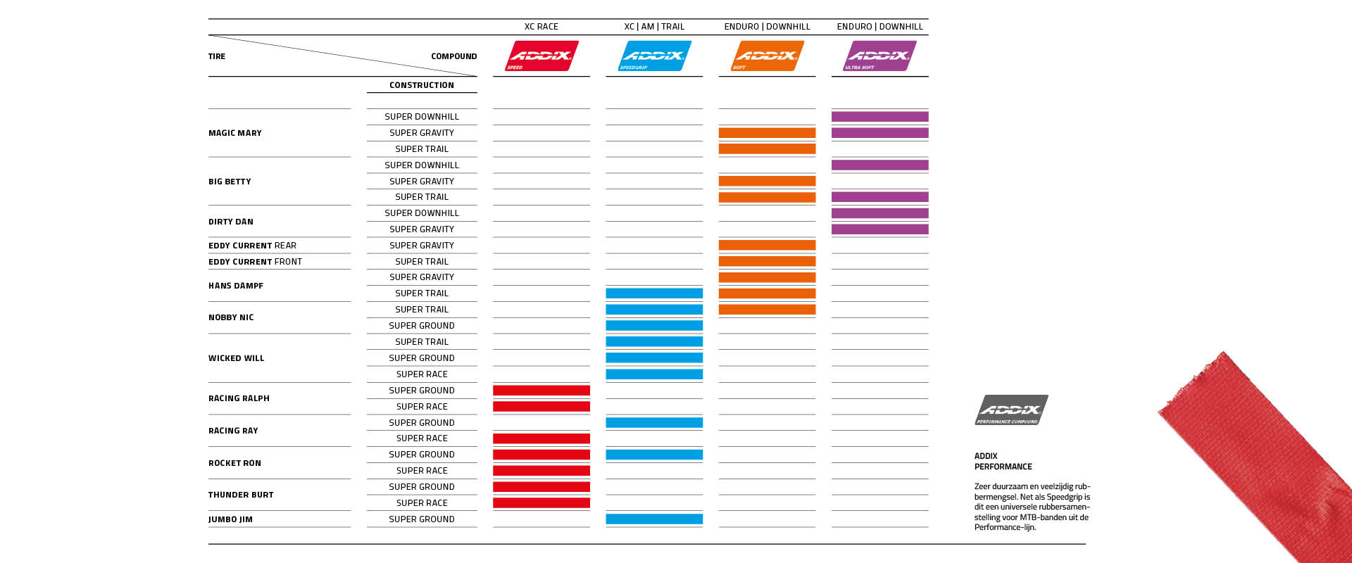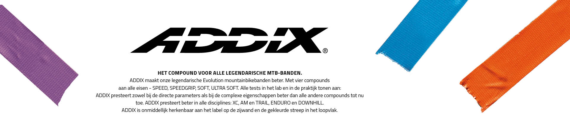 ADDIX ULTRA SOFT is het ADDIX compound voor hardcore enduro en downhill gebruik. ADDIX Ultra Soft is het hele jaar door geschikt dankzij de aanzienlijk verbeterde koude-eigenschappen op het gebied van grip en demping.