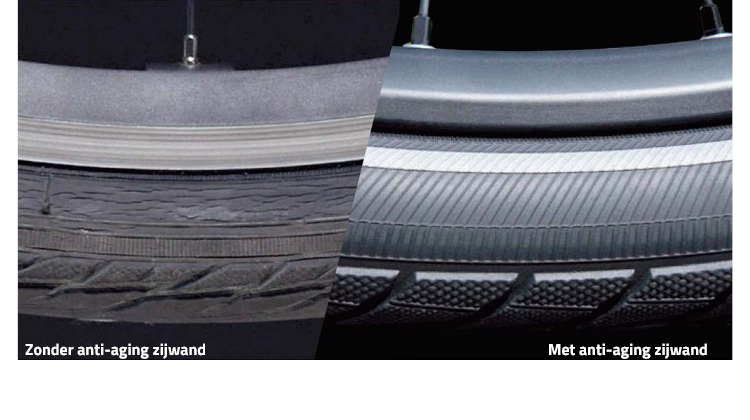 Door weersinvloeden en onvoldoende luchtdruk kan een fietsband vroegtijdig verouderen. Daarom hebben we een anti-aging technologie ontwikkeld: deze voorkomt dat er lelijke scheuren ontstaan in de zijwanden van de banden. Tegelijkertijd doen de Marathon Plus en Marathon Plus Tour met hun rubbercompound hun naam eer aan: het ADDIX compound rolt duizenden kilometers met uitstekende rijeigenschappen en geringe slijtage. En in de Marathon E-Plus zorgt het ADDIX-E compound, dat bijzonder geschikt is voor de specifiek hogere belasting van e-bikes, voor maximale duurzaamheid en grip..