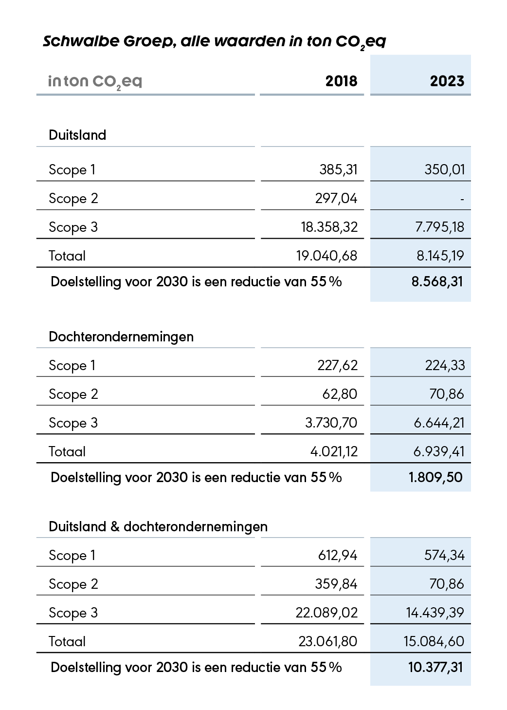 OVER HET GEHEEL GENOMEN IS ER EEN SIGNIFICANTE DALING GEWEEST IN DE TOTALE UITSTOOT SINDS HET BASISJAAR 2018 VOOR DE GEHELE SCHWALBE GROEP