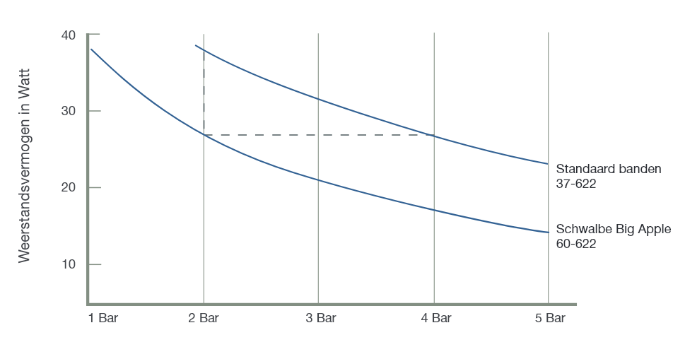 Al bij 2 bar rolt een 60 mm brede band net zo gemakkelijk als een 37 mm brede band bij 4 bar.