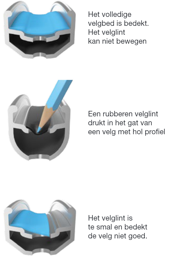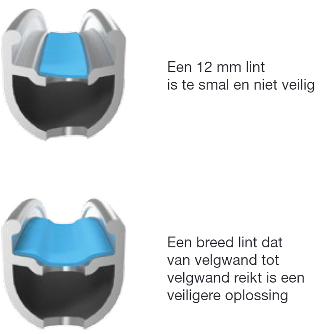 Het velglint moet het hele velgbed afdekken. Als het velglint smaller is dan het velgbed, kan het verschuiven en spaakgaten blootleggen.