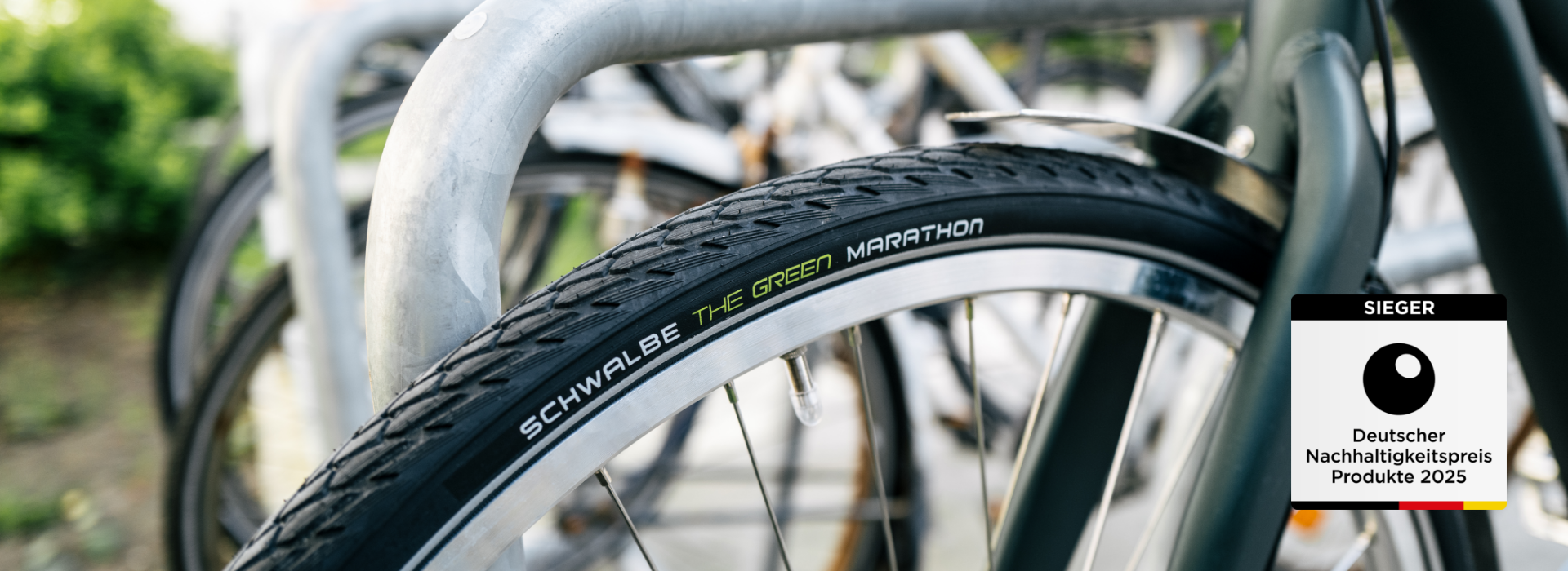 Schwalbe ist mit seinem Fahrradreifen „Green Marathon“ mit dem Deutschen Nachhaltigkeitspreis Produkte 2025 ausgezeichnet worden. Der Produktpreis zeichnet die Leuchttürme unter den nachhaltigen Lösungen aus und ist Deutschlands wohl renommierteste Anerkennung für vorbildliche ökologische und soziale Leistungen. Verliehen wird er durch die Stiftung Deutscher Nachhaltigkeitspreis.