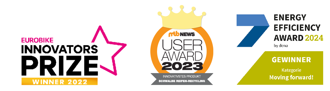 Das Schwalbe Schlauchrecycling wurde ausgezeichnet mit dem Eurobike Green Award 2015, dem Green Concept Award 2020 und dem Deutschen Nachhaltigkeitspreis 2021.
