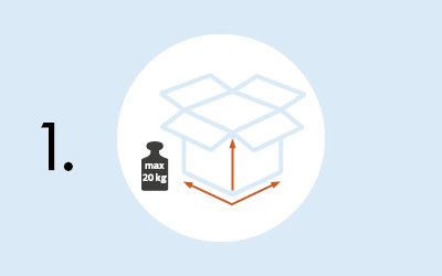Maximale Paketabmessungen: 50 cm x 50 cm x 80 cm