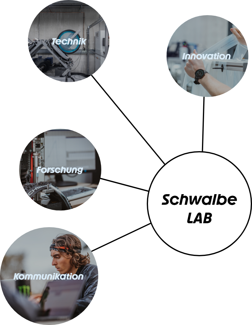 Das Schwalbe LAB ist bei uns sozusagen der Taktgeber für Innovation. Wir können neue Materialien auf Herz und Nieren testen und für die verschiedensten Szenarien den optimalen Reifen herstellen.